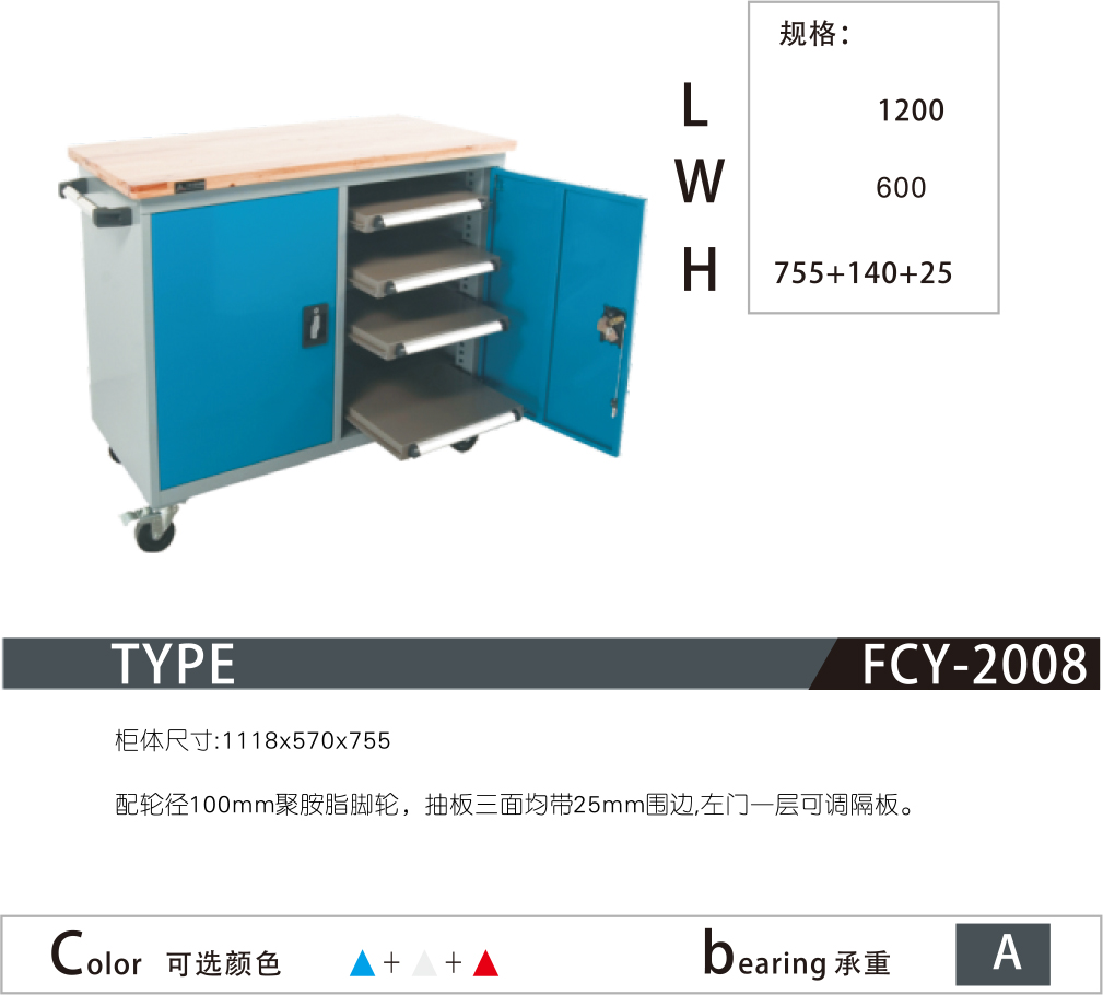 7.柜體頂部可選配:綠色條紋膠皮、圍邊、圖板、活動(dòng)背抽、方孔掛板或百葉掛板,增加工具柜的使用功能