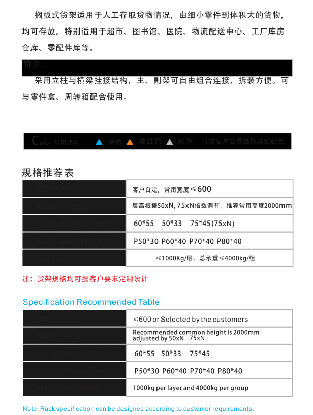 擱板式貨架適用于人工存取貨物情況,由細(xì)小零件到體積大的貨物,均可存放,特別適用于超市、圖書館、醫(yī)院、物流配送中心、工廠庫房倉庫、零配件庫等。